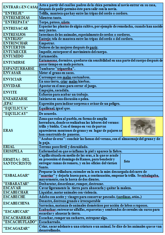 Algunas de ellas aparecen ilustradas con fotos que complementan el significado de los vocablos, ya de edificios públicos, términos topológicos del pueblo, antigüedades, plantas ...